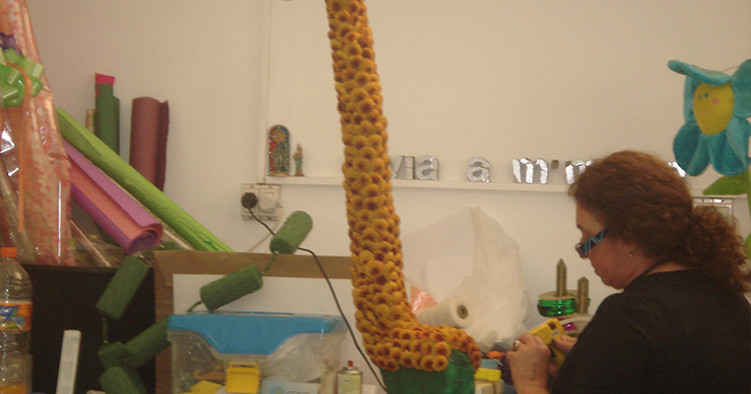 Cada año concurrimos con nuestros alumnos a montar escenografías florales que diseña la directora de EAAF, Viviana Mimare.