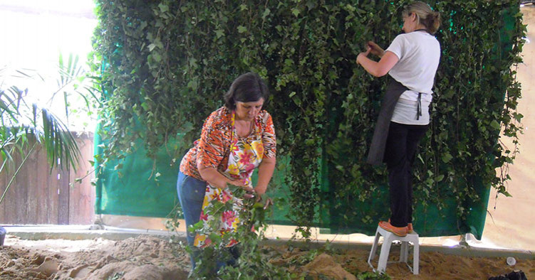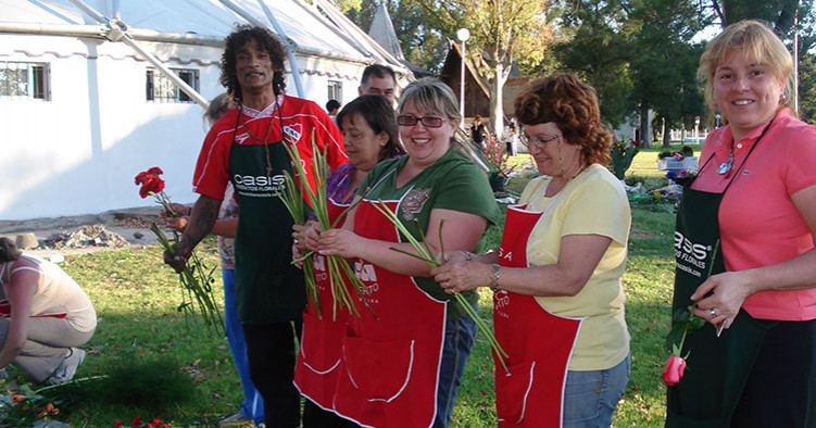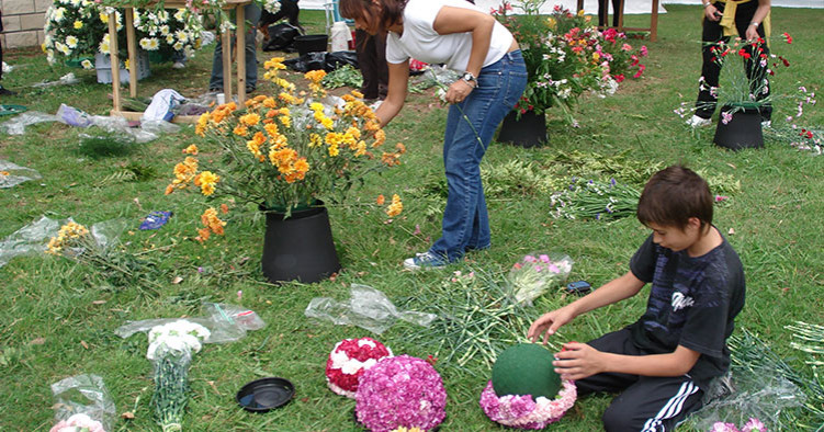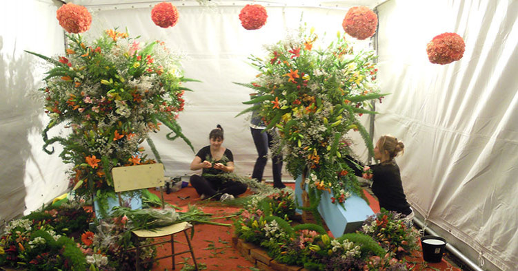 Cada año concurrimos con nuestros alumnos a montar escenografías florales que diseña la directora de EAAF, Viviana Mimare.